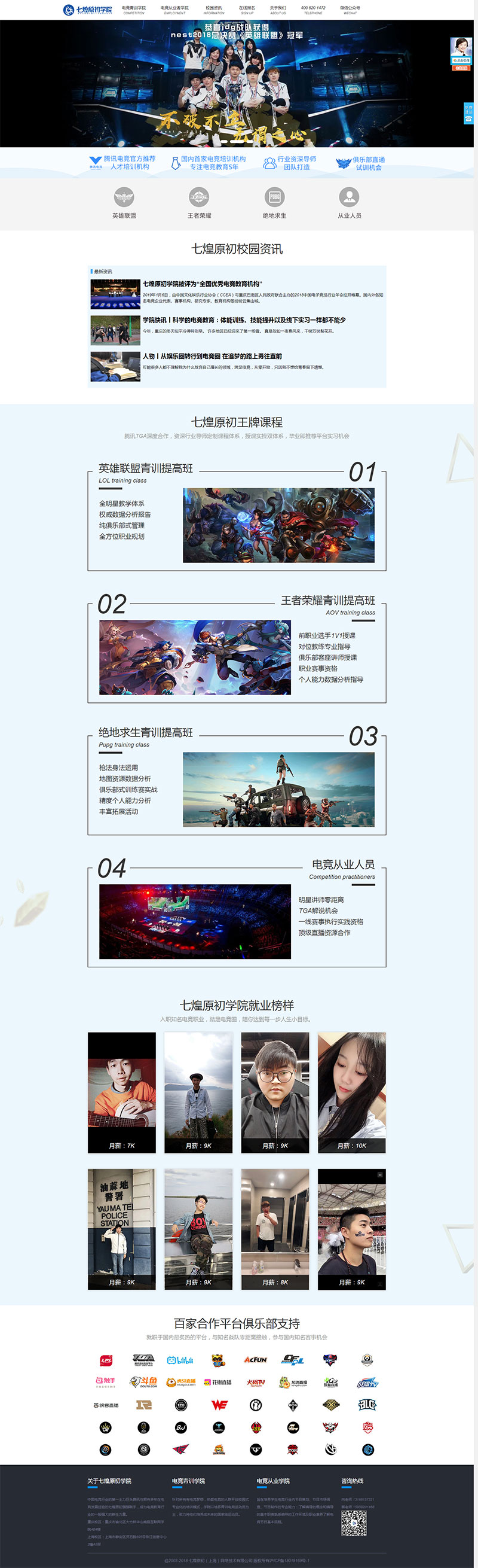 七煌原初(上海)網(wǎng)絡(luò)技術(shù)有限公司創(chuàng)辦于2014年,創(chuàng)辦初期獲得上海體育局與CCTV5等多家媒體的支持。初期招生就收到了6000余的簡歷,第一期招生過后輸送PentaQ 等多名選手進(jìn)入職業(yè)俱樂部,2015年七煌電競(jìng)學(xué)院開創(chuàng)了KHE女隊(duì)并獲得城市賽冠軍,2016年于成都啟動(dòng)「電競(jìng)生態(tài)孵化園」項(xiàng)目,并與清華大學(xué)開展合作電競(jìng)課題。當(dāng)年的9月還助力移動(dòng)電競(jìng),承辦 KPL 王者榮耀聯(lián)賽參賽隊(duì)伍培訓(xùn)。2017年七煌原初(上海)網(wǎng)絡(luò)技術(shù)有限公司正式收編入原初教育咨詢有限公司,正式更名為七煌原初(上海)網(wǎng)絡(luò)技術(shù)有限公司。進(jìn)軍西南,落戶成都,并聯(lián)合京東共同成立JD.Gaming及京東電競(jìng)青訓(xùn)營。
