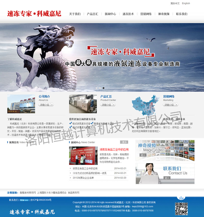 科威嘉尼(北京)科技有限公司是一家集研發(fā)、生產、銷售為一體的高新技術企業(yè),主要從事液氮速凍設備的研究、開發(fā)、制造、銷售。該系列產品采用最新的加熱技術、控溫技術和液氮分散技術,使程控升溫、恒溫、降溫各過程均勻穩(wěn)定。以液氮為制冷劑,滿足降溫及環(huán)保要求。產品有箱式、柜式、隧道式等多種規(guī)格,并可按用戶要求設計和制造,可用于機械工程、遺傳工程、醫(yī)藥、食品加工、醫(yī)學研究、植物保存、航空航天、畜牧等領域,該系列產品已廣泛應用于國內外眾多行業(yè)。