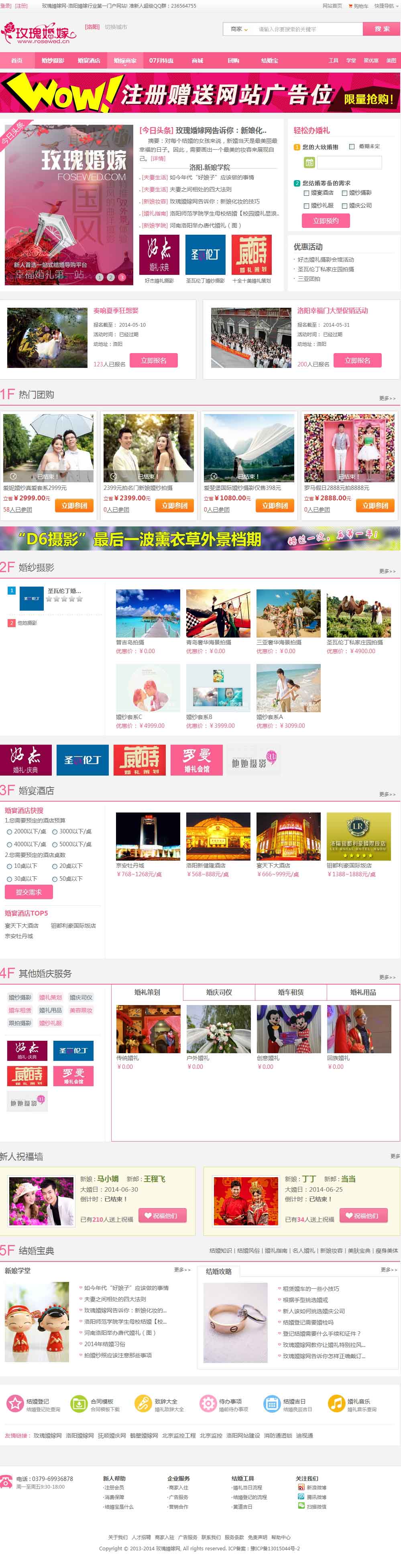 •      玫瑰婚嫁網(wǎng)(www.rosewed.cn)匯聚了結(jié)婚行業(yè)各大品牌,在玫瑰婚嫁網(wǎng)上你可以找到關(guān)于結(jié)婚方面的各種服務(wù)與產(chǎn)品。我們更會(huì)推出特價(jià)服務(wù),按照酒店預(yù)訂、婚禮策劃、婚紗禮服、婚車租賃、婚禮攝影、婚禮司儀、婚禮百貨、婚禮多媒體蜜月旅行等分類,把最全面的婚禮服務(wù)提供給消費(fèi)者,也為商家?guī)砜陀^的商業(yè)價(jià)值,玫瑰婚嫁網(wǎng)所做的一切旨在打造最新潮的的幸福產(chǎn)業(yè)。