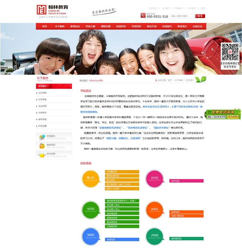 古有翰林屹立朝堂,今有翰林開班授學(xué)。合肥翰林培訓(xùn)學(xué)校又名翰林教育,于2003年注冊(cè)成立,是一家致力于提高學(xué)生學(xué)習(xí)能力和豐富學(xué)生學(xué)科知識(shí)積累的綜合性培訓(xùn)學(xué)校。十余年來,翰林一直致力于服務(wù)教育,為少兒及中小學(xué)生的提升而努力,目前,翰林擁有19個(gè)校區(qū),覆蓋合肥各區(qū)域。常年在校學(xué)生近18000人,匯聚了500余名具有豐富一線教學(xué)經(jīng)驗(yàn)的教師。