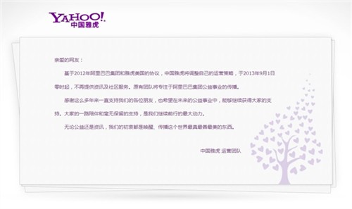 泡泡網(wǎng)顯卡頻道9月2日 昨日,中國雅虎在其門戶網(wǎng)站主頁發(fā)布布告稱,將于本年9月1日零時起不再供給資訊及社區(qū)效勞,原有團隊將專心于阿里巴巴集團公益事業(yè)的傳達。